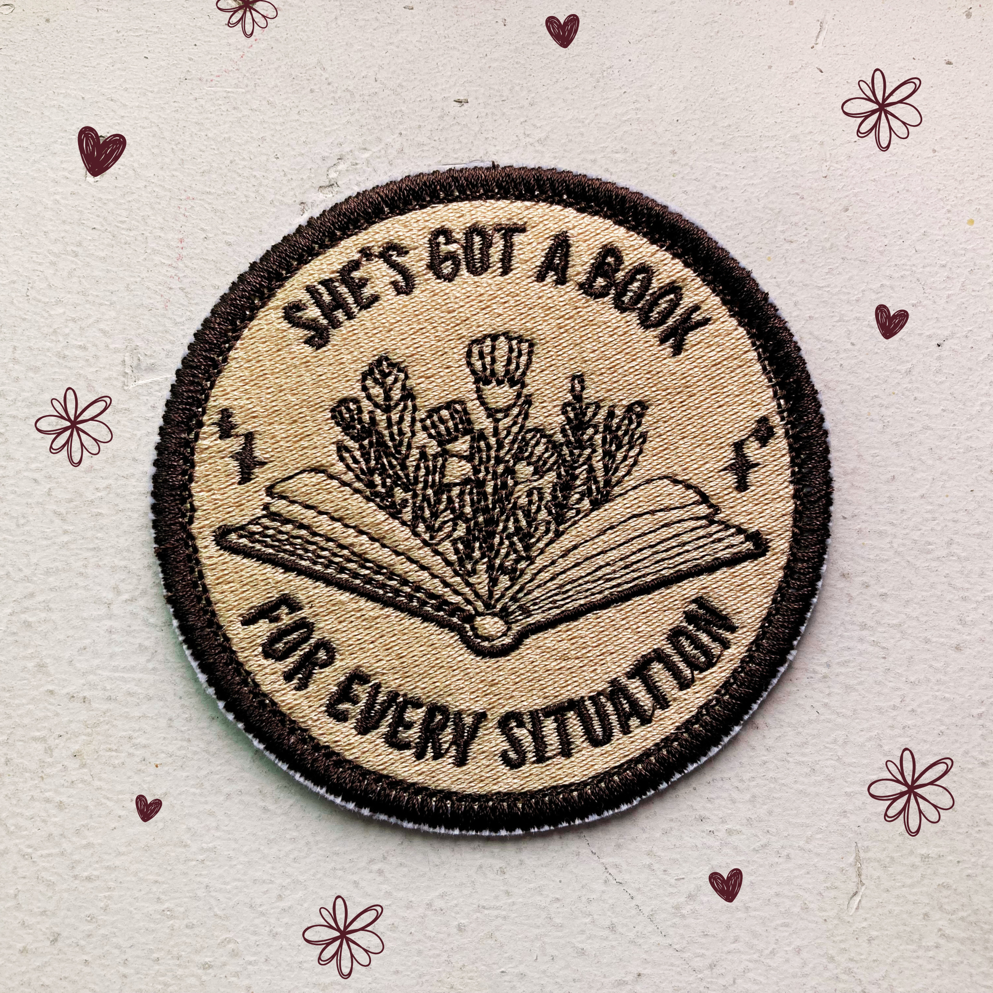 She’s the friend who speaks in quotes, who hands you the right book like it’s a remedy, who finds herself in a different story every week. This fully embroidered patch is for the ones who truly have a book for everything.